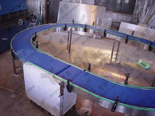 实际的网带输送机具有诸如长度和宽度的参数,一般来说,网带输送机的宽度不能超过2米,长度不能超过30米。如果输送的物料体积大,密度高,则必须在网带下方安装履带支架。如果输送线比较长,应该将网带输送机分成几段而不是分成几条,因为网带输送机如果超过30米,则牵引力下输送带的伸长率也过高太大,导致传送带脱轨或偏离。